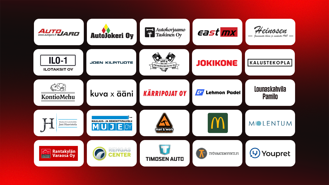 AutoJaro Oy, AutoJokeri Oy, Autokorjaamo Taskinen, East MX, Heinosen Leipomo, Ilotaksit Oy, Joen Kilpituote, Joen Pienkonehuolto Oy, Jokikone, Kalustekopla, KontioMehu Oy, Kuva ja Ääni Oy, Kärripojat Oy, Lehmon Padel, Lounaskahvio Pamilo, Maalaus-ja laatoitusliike Jani Haavistola, Maalaus-ja remonttipalvelu Muje Oy, Manandwork Oy, McDonald's, Molentum Oy, Rantakylän Varaosa Oy,Rengas Center, Timosen Auto Oy, Työvaatemyynti.fi, Youpret