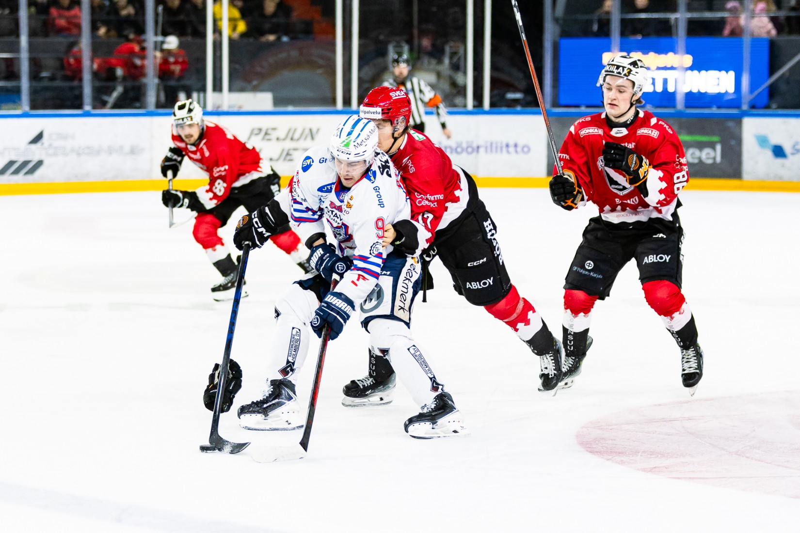 Ottelun avauserä tarjosi neljä osumaa, joista kolme iski kotijoukkue JoKP, kun Julius Janhonen, Juuso Jämsen ja Oliver Kopiloff onnistuivat maalinteossa.